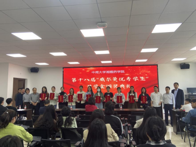 2023年5月8日,WG平台 在药学大楼四楼报告厅举办了第十八届“威尔曼优秀学生奖学金”颁奖典礼。典礼由WG平台 党委副书记王昊主持,WG平台 党委书记龚涛、副院长李乾斌、湘北威尔…