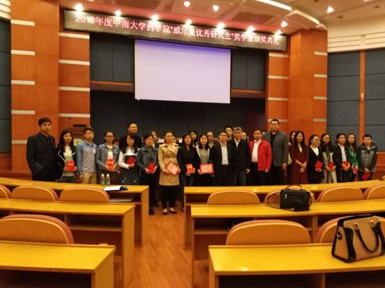关工委主任、党委彭林书记主持。副院长胡长平教授、李乾斌副教授、威尔曼新药研发有限公司研发总监付四海博士、董事长助理孙天宇博士及新药信息主管方顺丽女士应邀为获奖学生颁奖。