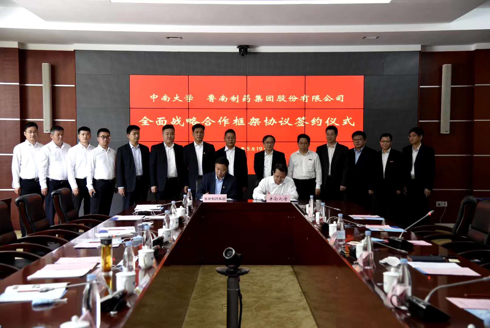 5月19日上午,中南大学与鲁南制药集团股份有限公司签订全面战略合作框架协议,将在人才培养、学科建设、学术交流、临床研究等方面开展深度合作。鲁南制药集团党委书记、董事长、总经理张贵民,中南大学党委书记易红、常务副书记陶立坚、副校长陈立章出席活动。陈立章主持签约仪式