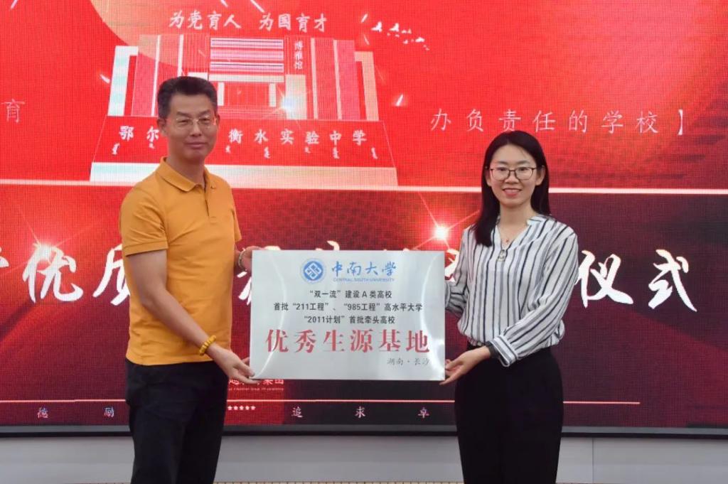 2024年6月24日下午,“中南大学优秀生源基地”授牌仪式在鄂尔多斯衡水实验中学隆重举行。仪式由鄂尔多斯衡水实验中学执行校长王梦旭主持。