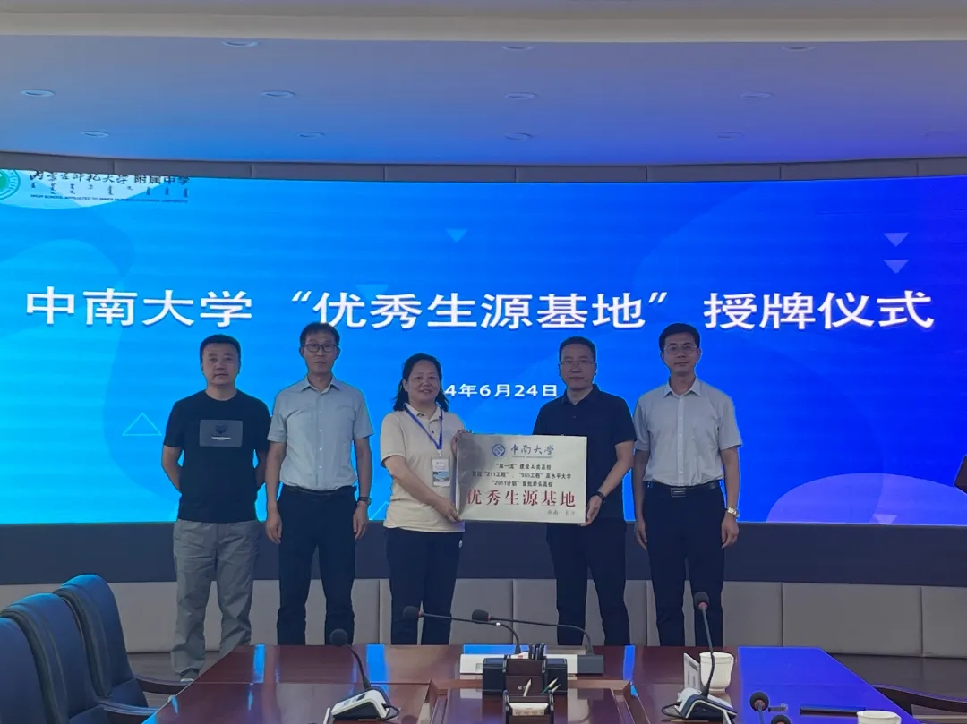 2024年6月24日上午,中南大学与内蒙古师大附中举行了隆重的“优秀生源基地”授牌仪式。内蒙古师大附中校长刘绪才,副校长王治国,教学与教务管理中心主任张生,教学与教务管理中心副主任永胜、WG平台