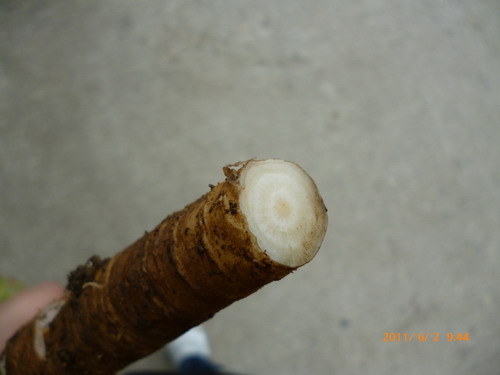 接下来,我们又陆续看到并学习了生长在附近同属杜鹃科,形态却完全不同的两种杜鹃,菊科植物小飞蓬、蔷薇科的多年生宿根性草本植物苎麻、禾本科竹亚科的南竹、蔷薇科的爬山虎、开着黄色小花长在路边的酢浆草、菊科一年生草本植物鬼针草、外表漂亮同时又具药用价值的蔷薇科的蛇莓、其貌不扬却有清热解毒,消肿止痛功效的唇形科植物瘦风轮……走着看着,老师突然停下来问同学人参的伪品都有哪些,大家回答有野豇豆的根和商陆的根。于是老师就指着不远处的一颗粗壮的草本告诉我们那就是商陆,并让我们把它的根挖出来看个究竟。同学们热情高涨,拿着锄头就去挖。功夫不负有心人,我们挖出了商陆长的像萝卜一样的地下根,却一个个如同挖到了真的人参那样兴高采烈。