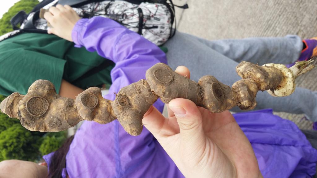 百合,鳞茎球形,淡白色,有不定根。养阴润肺;清心安神。其他小组还有看到百合花的,可惜我们没有看到。