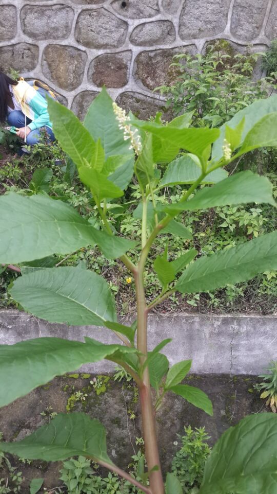 商陆,对,就是那个冒充人参的家伙。刚到黑麋峰,我们就发现了几株,我们试图将其根部挖出来,我也曾亲自上手,可最后还是没有看到明显的像人参的根,可能是还比较小,年份不够。