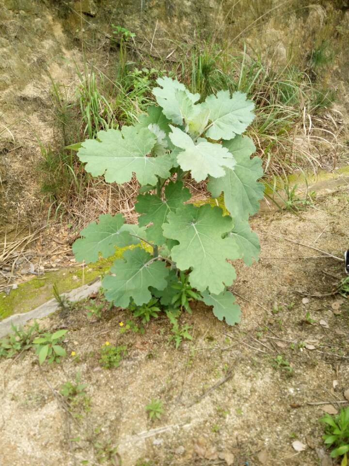 下山的路上我们还发现了一株“巨型”博落回。博落回,叶圆心形,边缘线分裂,裂片有粗齿,罂粟科,有很好的抗菌消炎作用,将它折断会有红色汁液流出,有毒,在黑麋峰山上常见,只可惜不是它的花期,没有看到它白色漂亮的花。