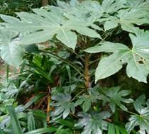 八角金盘,指其掌状的叶片,裂叶约8片,看似有8个角而名。常绿灌木或小乔木,茎光滑无刺,具有叶镶嵌的特点,能够使全部叶片均能以最大面积接受阳光,以利进行光合作用,从而不禁让人感叹植物的生存智慧。药用来源为五加科植物八角金盘的叶或根皮。具有化痰止咳,散风除湿,化瘀止痛之功效。主治咳喘,风湿痹痛,痛风,跌打损伤。