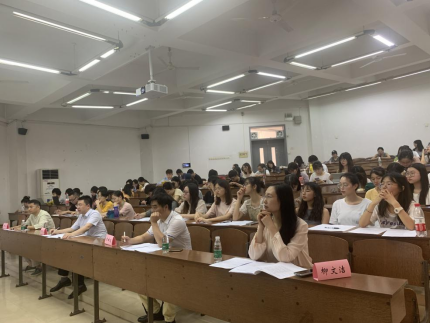 在前栋T110教室举办第一届“群英闪‘药’”英语论坛。全体18级本科生参加论坛,朱曲波、刘珍宝、柳文洁、陈卓四位老师出席活动。