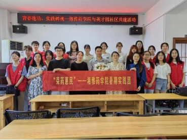 桂玲智老师带领的荣"药"惠民—中南大学研究生暑期社会实践团如期举行。在本次活动中,研究生志愿者针对儿童和老年人等特殊人群,以个性化、有针对性的方式进行了防疫及药品知识科普。